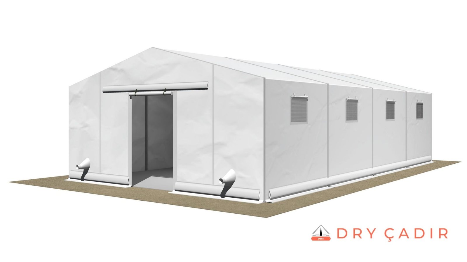 - 10 × 20 m (200 m²) — Toplu barınma, sahra hastanesi, yemek dağıtım alanı gibi büyük ölçekli kullanım.