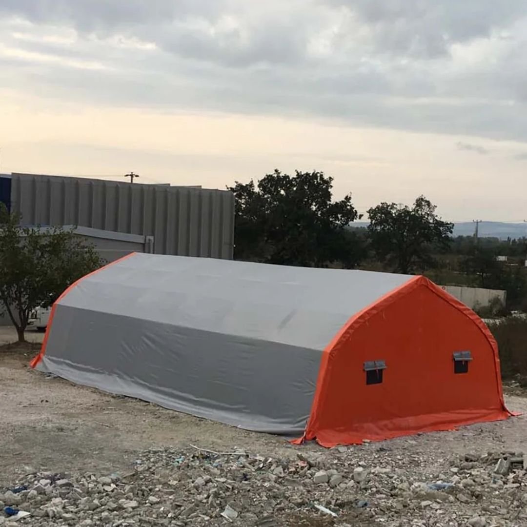 Dayanıklı şantiye çadırı, işçi barınma, yemekhane, ofis ve depo alanı için tasarlanmış su geçirmez ve UV korumalı yapısıyla inşaat projeleri için pratik ve ekonomik çözümdür.